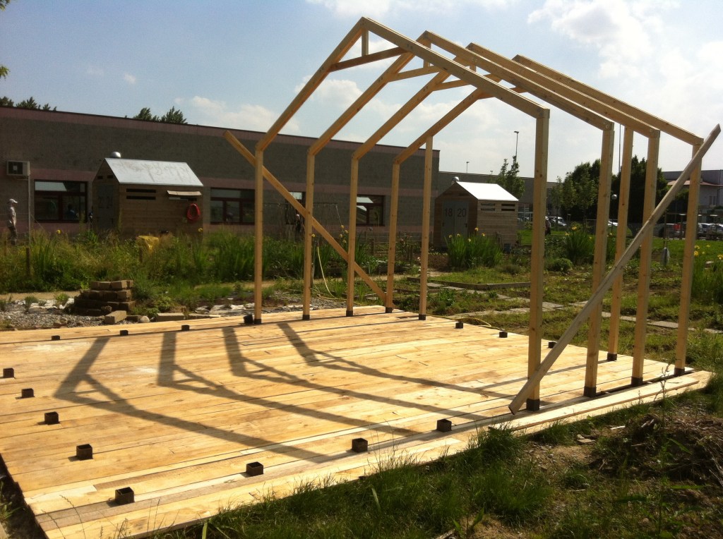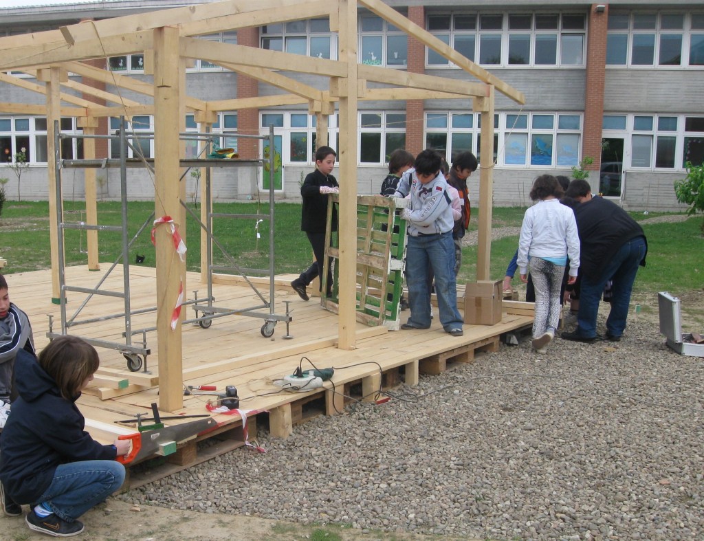 Fase finale del lavoro è l’applicazione pratica dei principi affrontati in fase di studio, all’interno di un progetto ed in seguito nella costruzione di una piccola “architettura naturale”.
